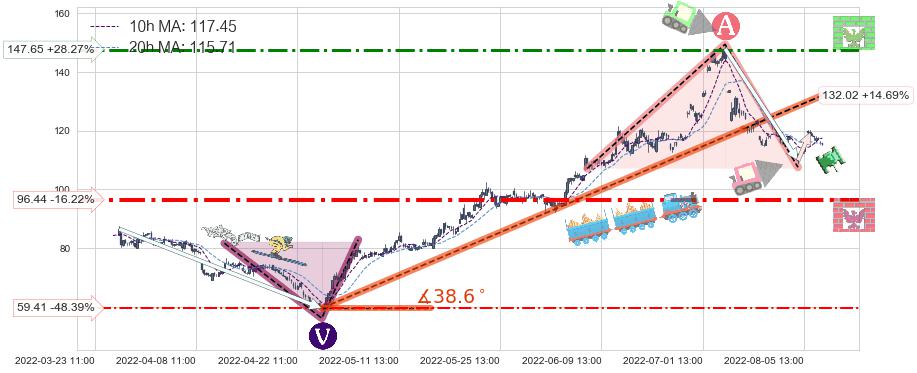 ♘ 阻力价格位147.65,可信任强度56.39%,距离最后交易2022-08-12 14:00形成的收盘价格115.11相差 +28.27%