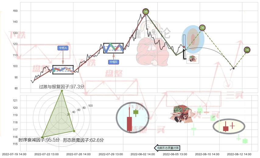 从2022-06-08 09:00至2022-08-03 14:00,共包含106个小时,阶段股价上涨1.72%,阶段股价变动位移路程比: 1 : 94