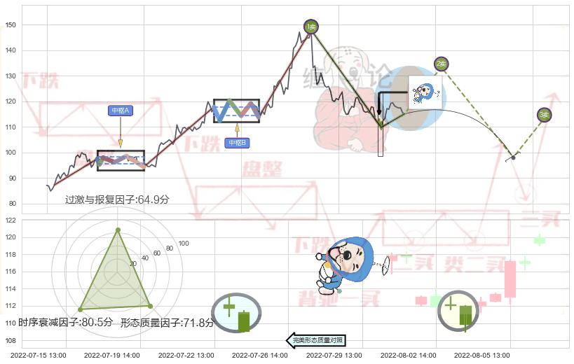 从2022-07-08 14:00至2022-08-03 14:00,共包含37个小时,阶段股价下跌-28.60%,阶段股价变动位移路程比: 1 : 2