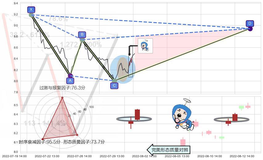 ➢ 🕰 价格走势在2022-08-11 13:00:00至2022-08-11 14:00:00期间形成上涨螺旋桨形态,残存影响值:7.08
