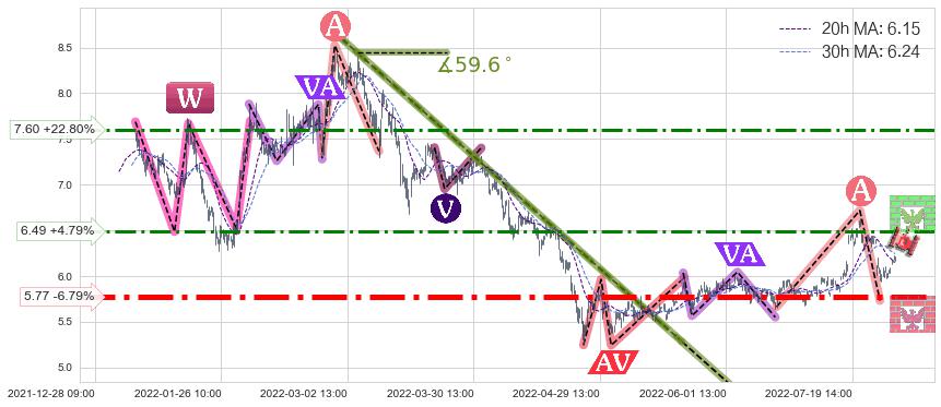 ♘ 阻力价格位7.60,可信任强度62.66%,距离最后交易2022-08-12 14:00形成的收盘价格6.19相差 +22.80%