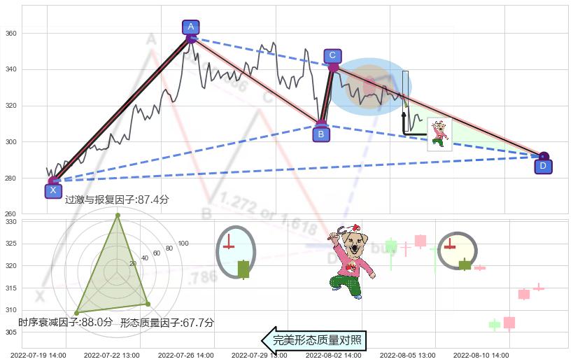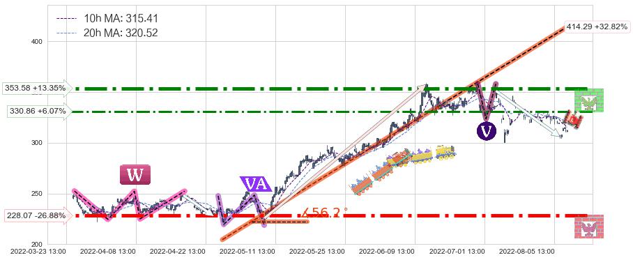 ♘ 阻力价格位330.86,可信任强度64.55%,距离最后交易2022-08-12 14:00形成的收盘价格311.93相差 +6.07%