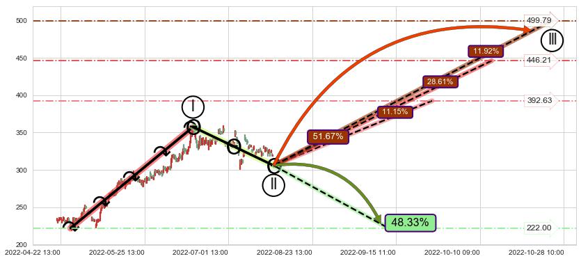 ➣ D点拟合预测价格291.68,距离最后交易收盘价格311.93相差 -6.49%