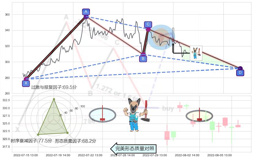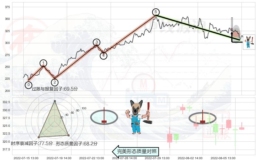 ➢ 🕰 价格走势在2022-08-05 14:00:00至2022-08-09 13:00:00期间形成射击之星形态,残存影响值:-6.84