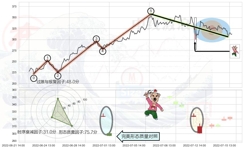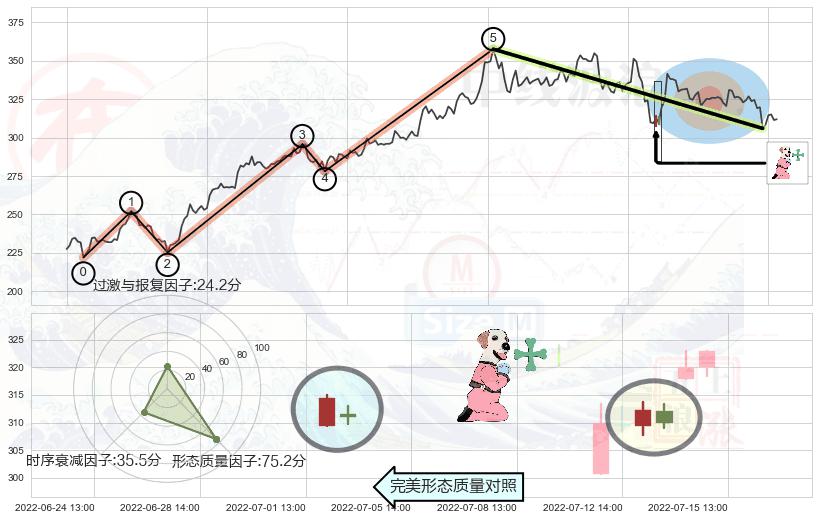 ➢ 🕰 价格走势在2022-07-11 14:00:00至2022-07-12 13:00:00期间形成射击之星形态,残存影响值:-3.89