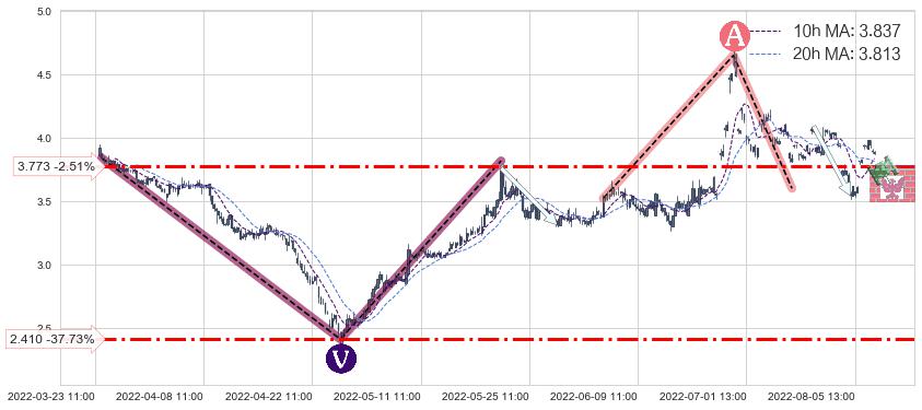 ♘ 支撑价格位2.410,可信任强度56.38%,距离最后交易2022-08-12 14:00形成的收盘价格3.870相差 -37.73%