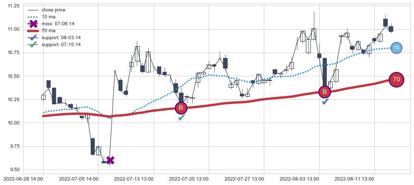 ➢ 最优均线组合共正确确认支撑阻力信号4处,正确确认率 66.67%