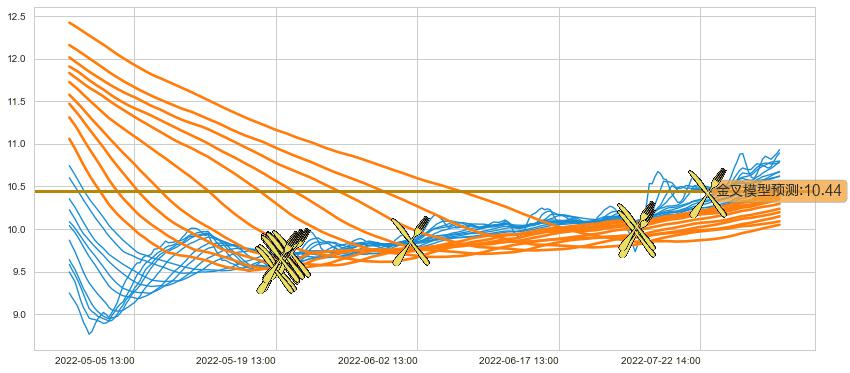 ➣ 80小时均线于(05-19 11:00: 9.52)形成【金叉】基于【金叉历史模型】预测金叉后最高波峰价格: 10.70, 金叉后最高价格11.03,已经上涨超出预测最高波峰价格, 预期回调