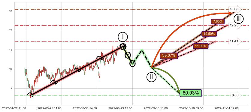 ♘ 支撑价格位9.87,可信任强度88.14%,距离最后交易2022-08-12 14:00形成的收盘价格10.97相差 -10.01%