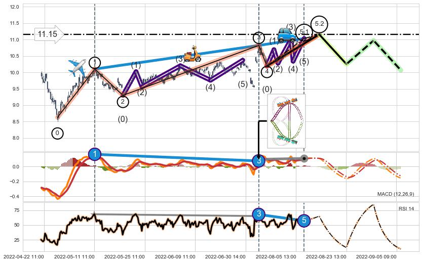 ➣ 5.1: 预测当前第5浪位置(08-12:13, 11.03),仍然有上升空间