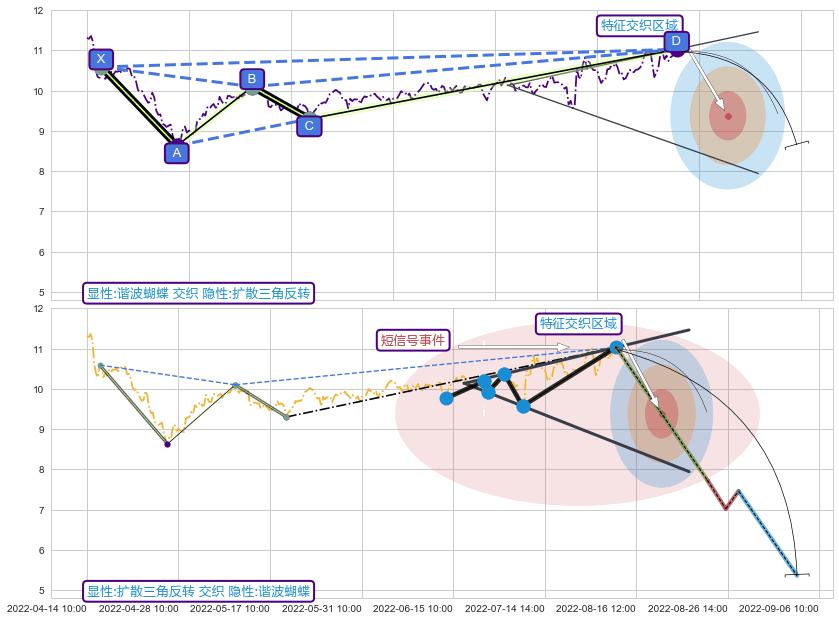 ➢ 扩散三角反转属【短级别信号事件】谐波蝴蝶属【长级别信号事件】长短周期组合信号事件, 短长事件长度比33.57%