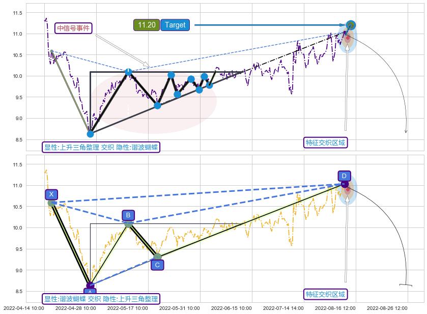 ➢ 上升三角整理属【中级别信号事件】谐波蝴蝶属【长级别信号事件】中长周期组合信号事件,中长事件长度比43.11%