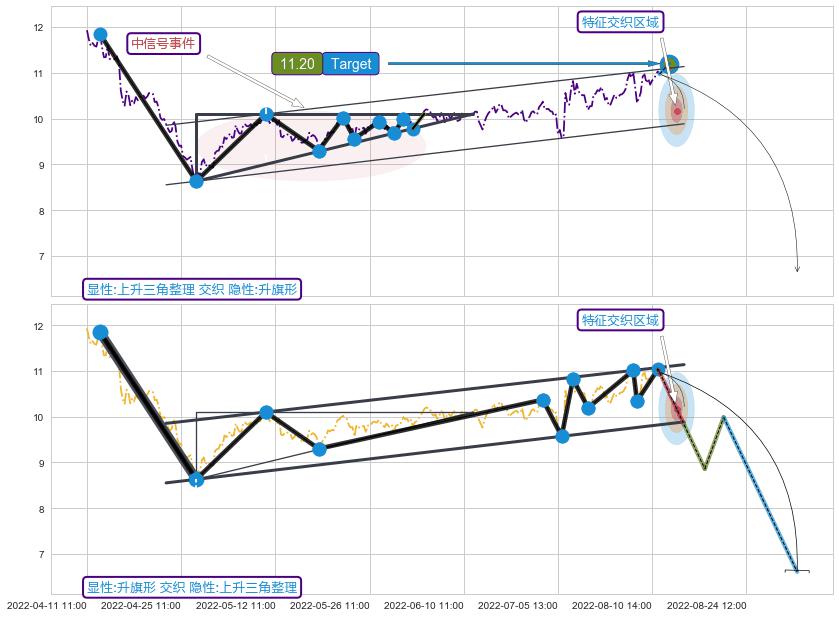 ➢ 上升三角整理属【短级别信号事件】缠论中枢点属【长级别信号事件】长短周期组合信号事件, 短长事件长度比26.07%