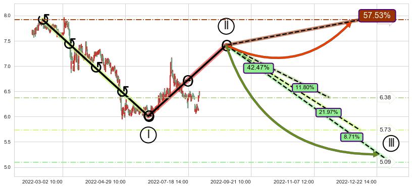 ➣ c.1: 当前c浪回调位置(08-12:13, 6.44),仍然有回调空间