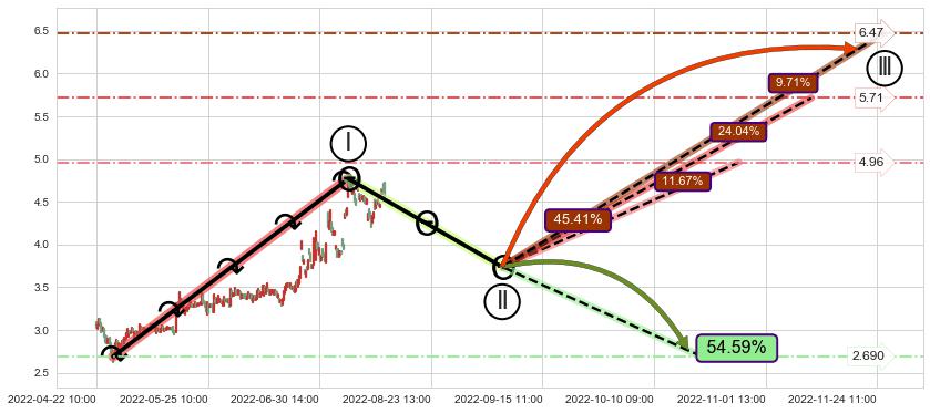 ♘ 阻力价格位4.77,可信任强度55.62%,距离最后交易2022-08-12 14:00形成的收盘价格4.57相差 +4.38%