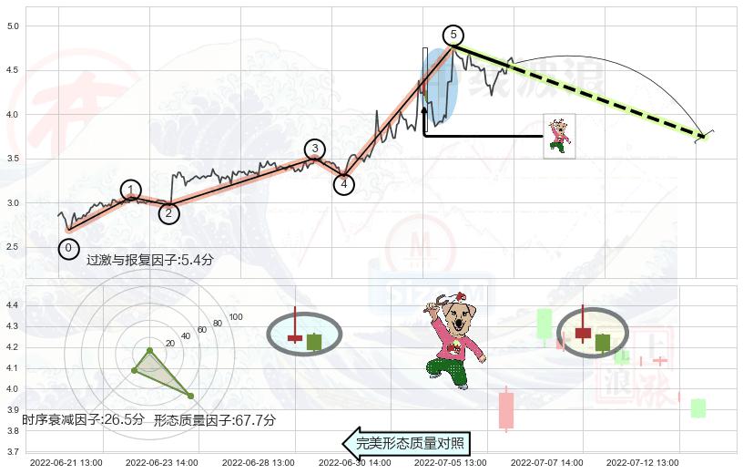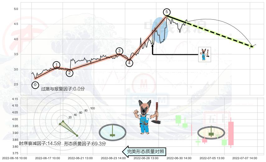 ➢ 🕰 价格走势在2022-07-04 13:00:00至2022-07-04 13:00:00期间形成看跌(高位倒锤头)流星线,残存影响值:-1.62