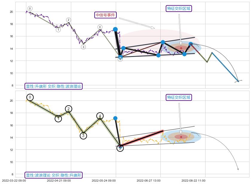 ♘ 在最后的下跌阶段2022-03-23 14:00至2022-06-28 14:00,存在 破位边缘的阻力位 ,阻力价格14.34,可信任强度73.57%,其距离最后价格14.72相差 -2.61%
