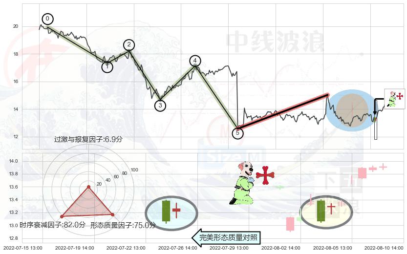➢ 🕰 价格走势在2022-08-10 14:00:00至2022-08-10 14:00:00期间形成单针探底(定海神针),残存影响值:4.97