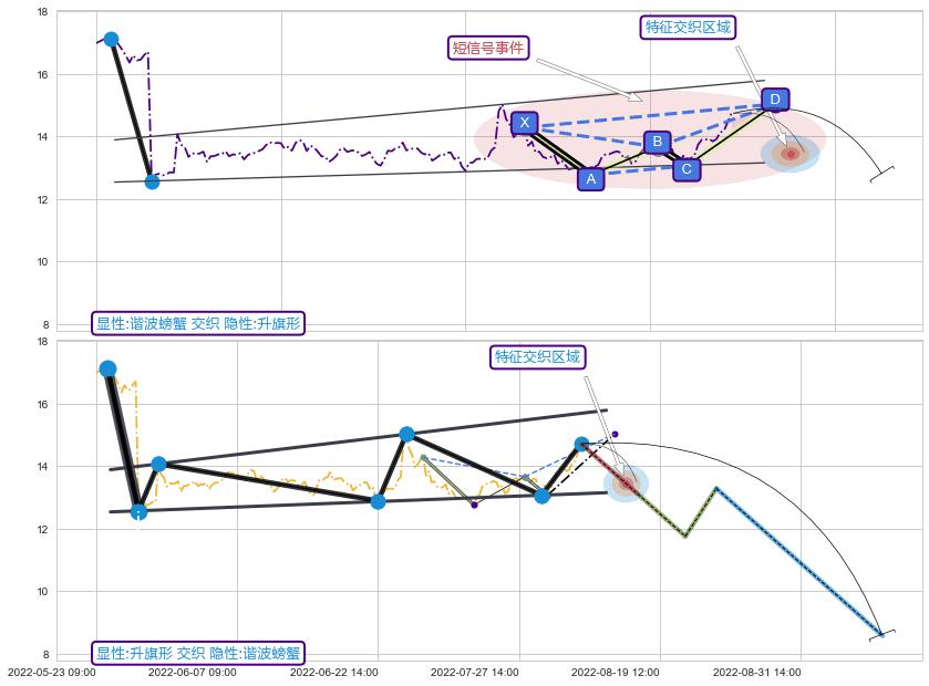 ➢ 谐波螃蟹属【短级别信号事件】升旗形属【长级别信号事件】长短周期组合信号事件, 短长事件长度比33.73%