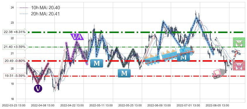 ♘ 支撑价格位19.51,可信任强度57.42%,距离最后交易2022-08-12 14:00形成的收盘价格20.66相差 -5.59%
