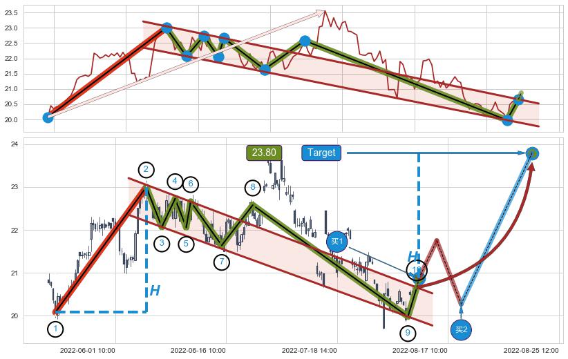 ➣ 最小中继整理涨幅→𝐇: 2.920 (𝐇旗杆的长度:旗杆起点→顶点)