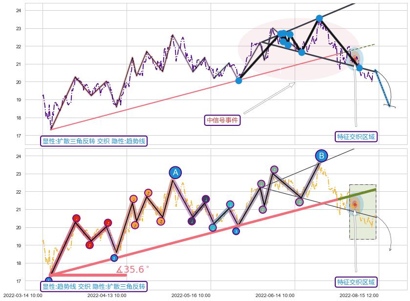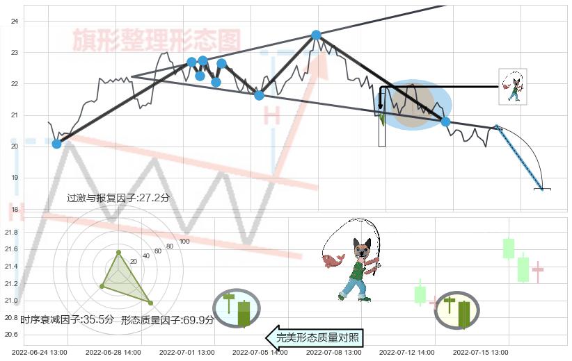 ➢ 2022-03-16 10:00-2022-07-13 13:00上升趋势存在反转[风险],其原上升趋势的支撑位(22.10)已破位[强阻力信号],原上升趋势角度: 35.6˚