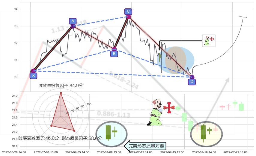 ➢ 上涨孕十字星 🔜 谐波鲨鱼d拐点上涨支撑 综合量化分数:52.96 【中性】
