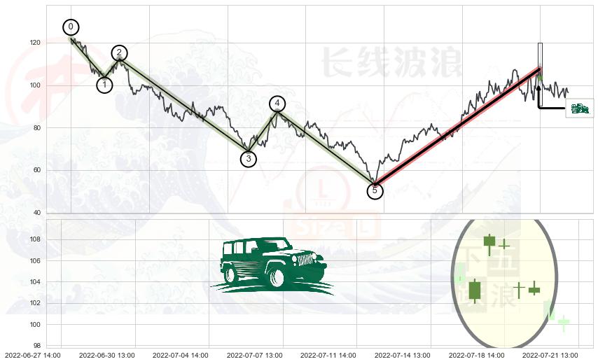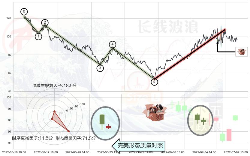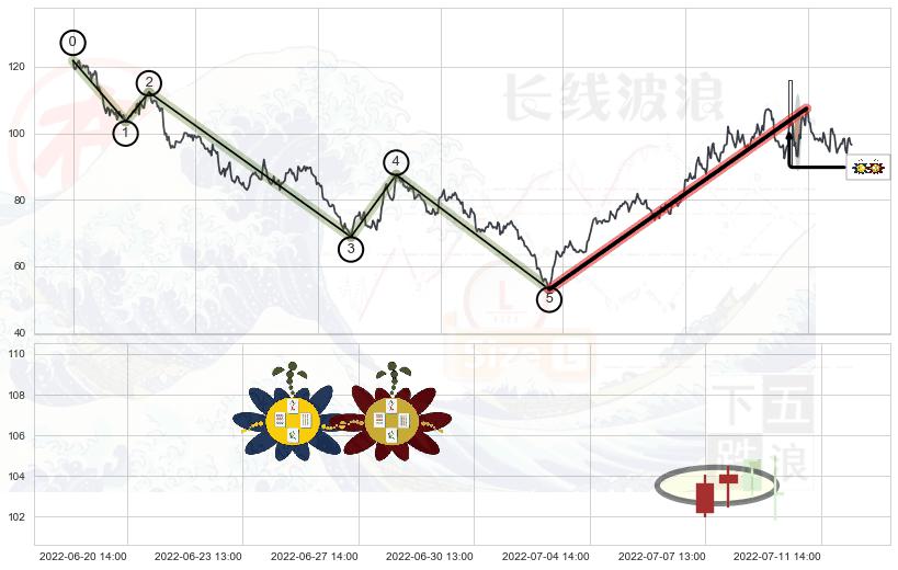 ➢ 🕰 价格走势在2022-07-15 14:00:00至2022-07-19 14:00:00期间形成高档五阴线,残存影响值:-3.63