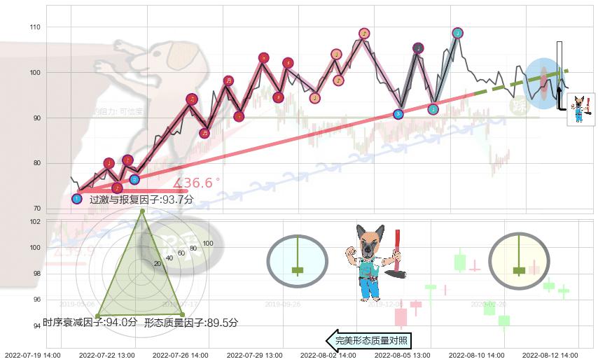♘ 阻力价格位102.21,可信任强度62.51%,距离最后交易2022-08-12 14:00形成的收盘价格96.52相差 +5.90%