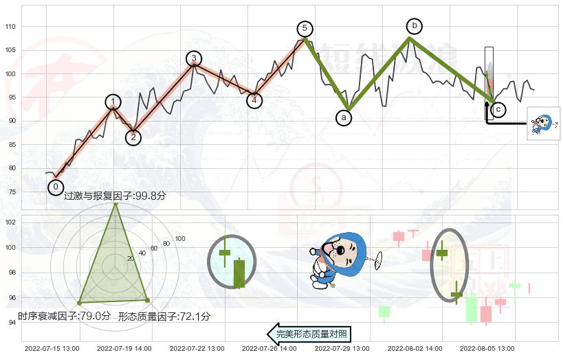 ➢ 🕰 价格走势在2022-07-15 14:00:00至2022-07-19 14:00:00期间形成高档五阴线,残存影响值:-3.63