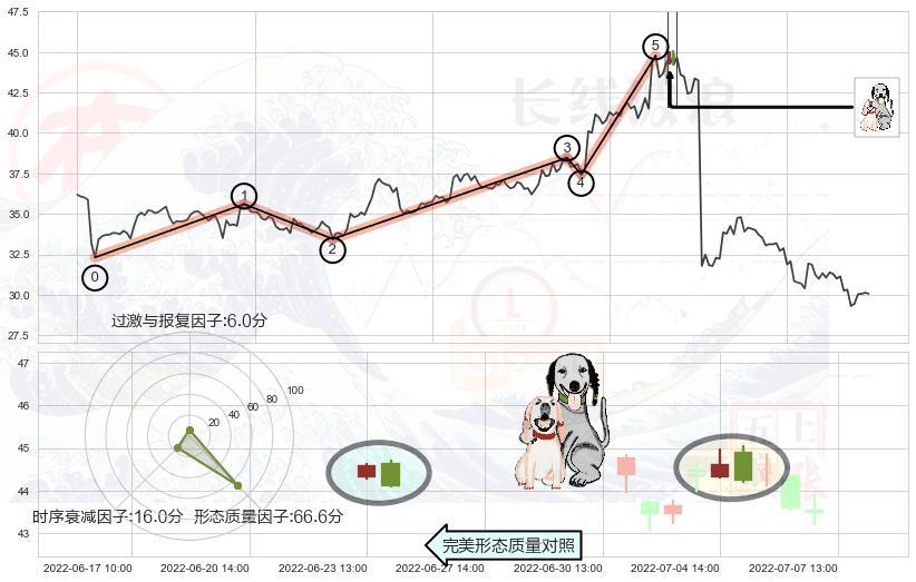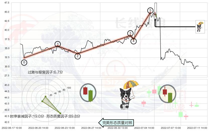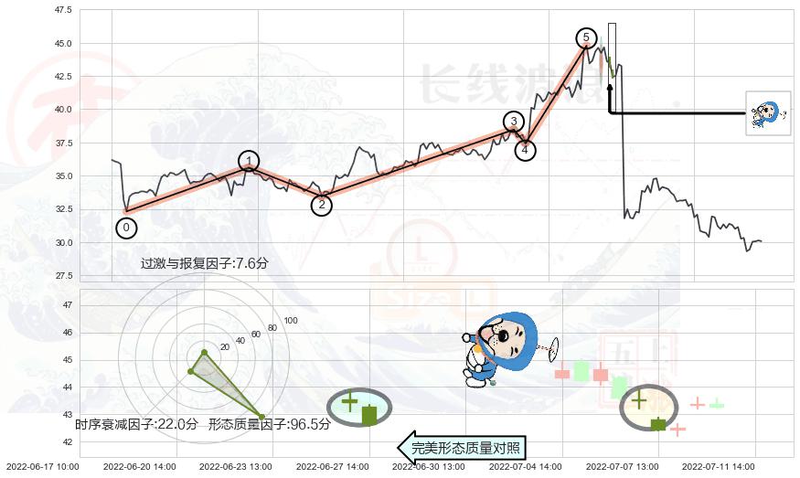 ➢ 看跌(高位倒锤头)流星线 🔜 波浪理论上涨浪:浪5回调拐点 综合量化分数:47.20 【中性】