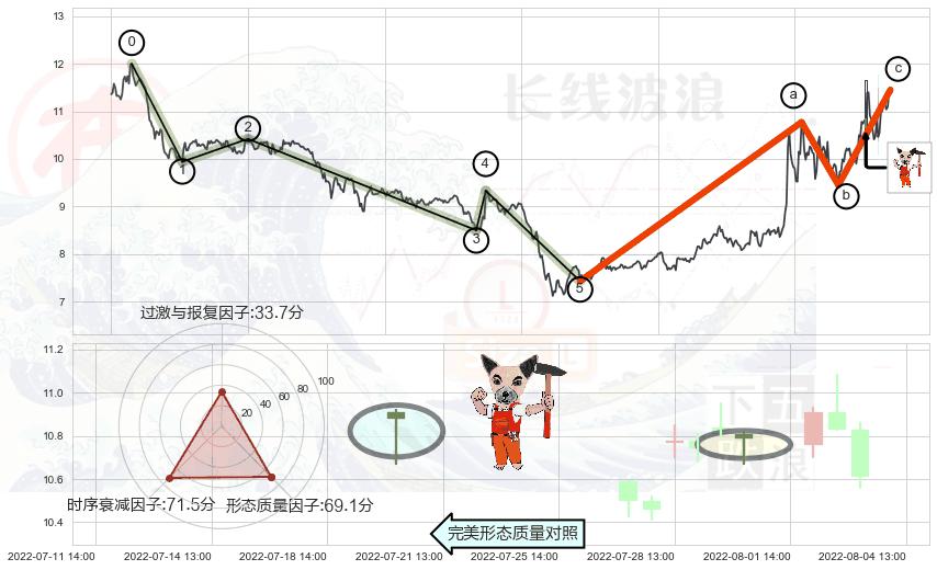 ➢ 锤头线(锤子线) 🔜 波浪理论击穿突破C点继续上涨 综合量化分数:53.88 【偏多】