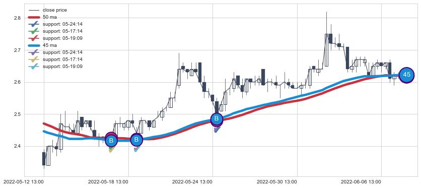 👍 尚未达到多条均线预测的最高波峰价格的平均值, 预期继续上涨