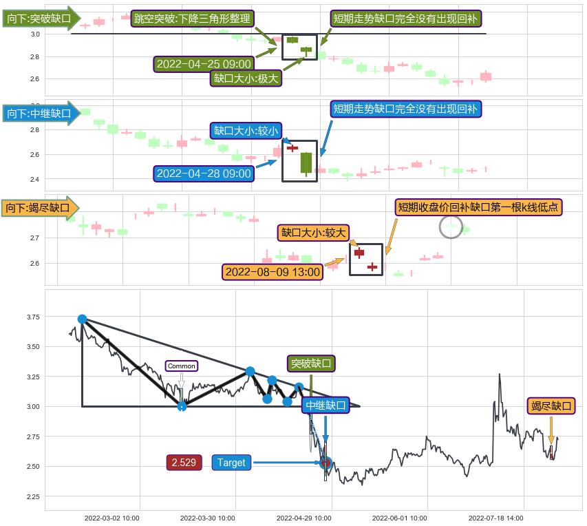 ➢ 2022-08-09 13:00形成:向下跳空【竭尽】缺口