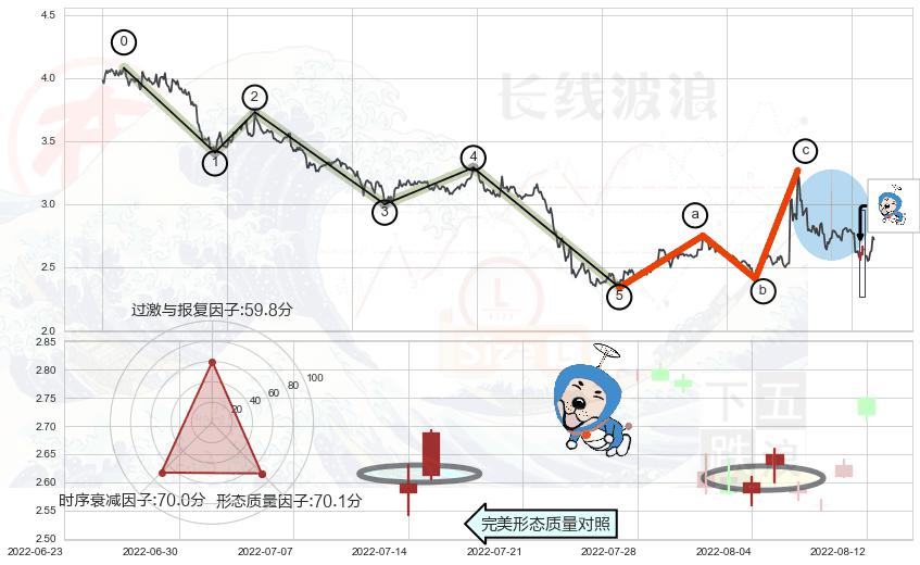 从2022-06-14 11:00至2022-07-15 14:00,共包含58个小时,阶段股价上涨12.60%,阶段股价变动位移路程比: 1 : 8