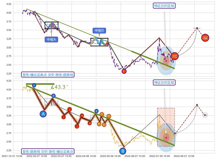 ➣ 缠论买卖点:下降缠:猜想2买趋势延续,蓄力上涨至3买(大周期趋势均值回复中的小周期趋势跟踪)