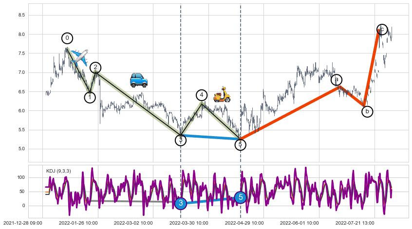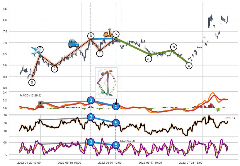 ➣ ['回调abc识别为: 【锯齿型调整浪】 ', '锯齿型:子浪535结构 ⓑ点振幅较小,ⓒ点继续发力远超ⓐ点结束位置']