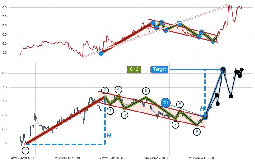 ➣ 最小中继整理涨幅→𝐇: 1.6900 (𝐇旗杆的长度:旗杆起点→顶点)
