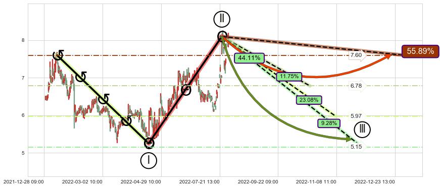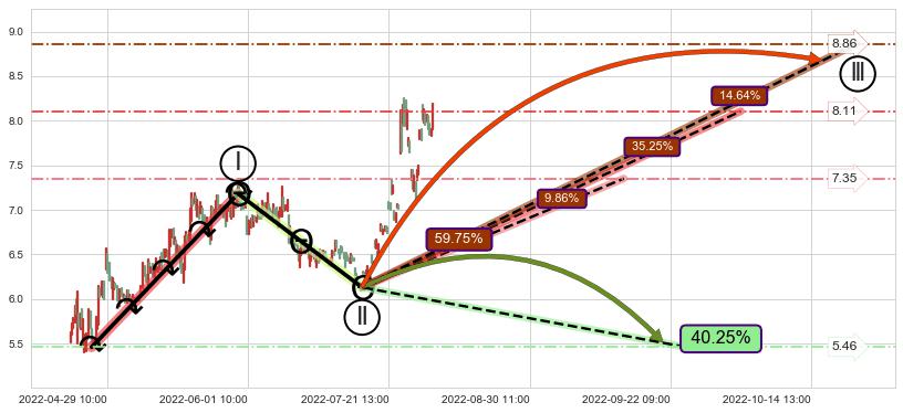 ♘ 支撑价格位7.15,可信任强度77.75%,距离最后交易2022-08-12 14:00形成的收盘价格8.13相差 -12.06%