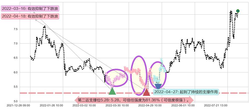 ♘ 支撑价格位5.28,可信任强度81.36%,距离最后交易2022-08-12 14:00形成的收盘价格8.13相差 -35.00%