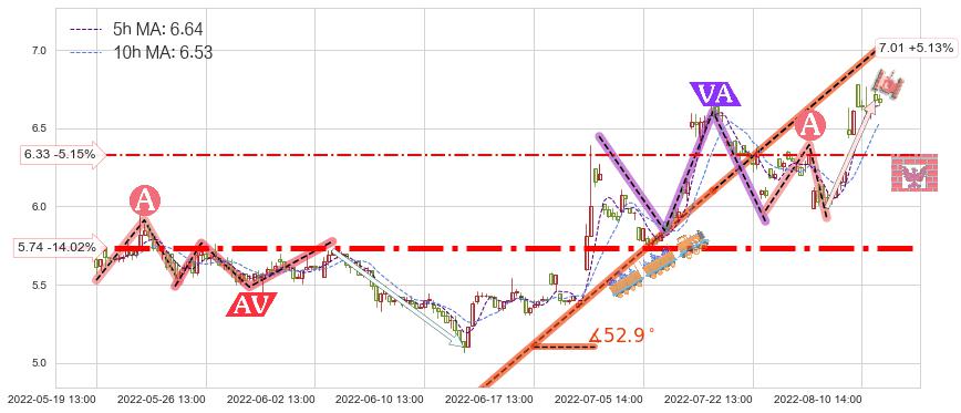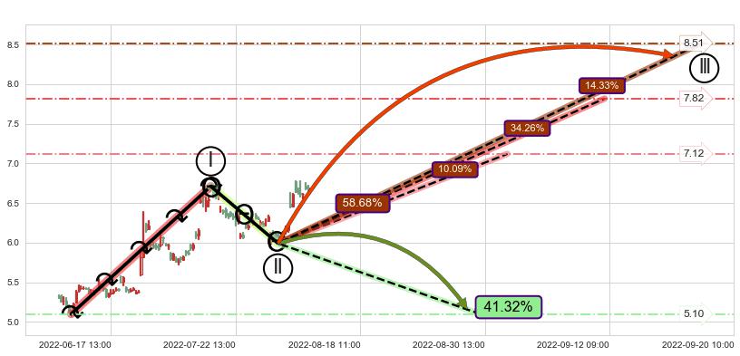 ♘ 支撑价格位5.74,可信任强度95.63%,距离最后交易2022-08-12 14:00形成的收盘价格6.67相差 -14.02%