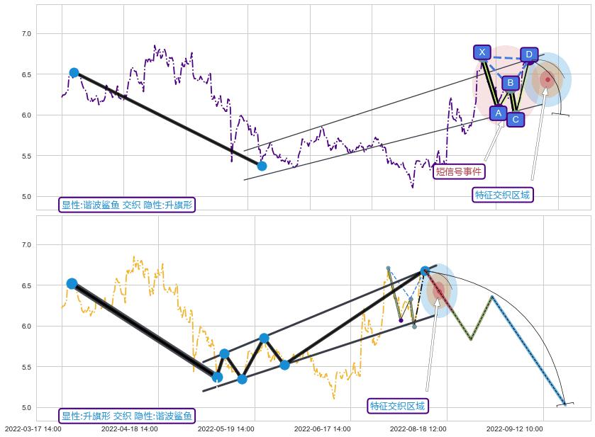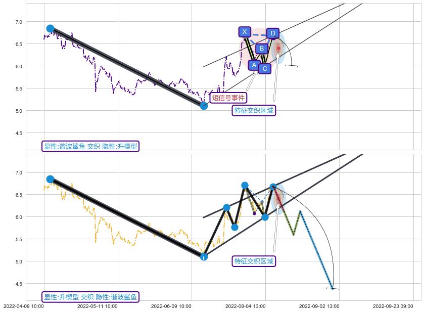 ➢ 谐波鲨鱼属【短级别信号事件】升楔型属【长级别信号事件】长短周期组合信号事件, 短长事件长度比12.83%