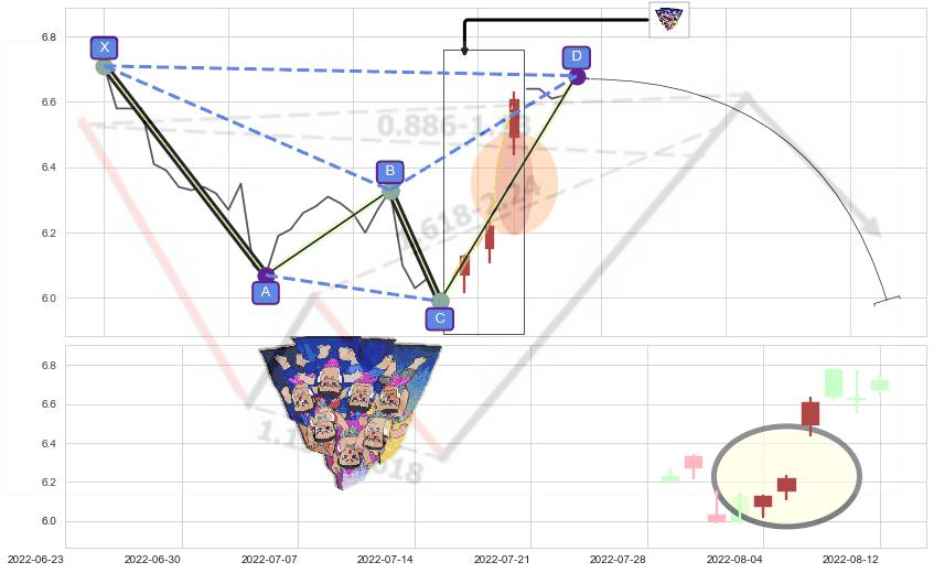 ➣ 已完成【鲨鱼】形态起点X: 07-15:13, 终点D: 08-12:13, 共39交易小时