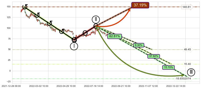 ➣ D点拟合预测价格140.98,距离最后交易收盘价格88.07相差 +60.08%