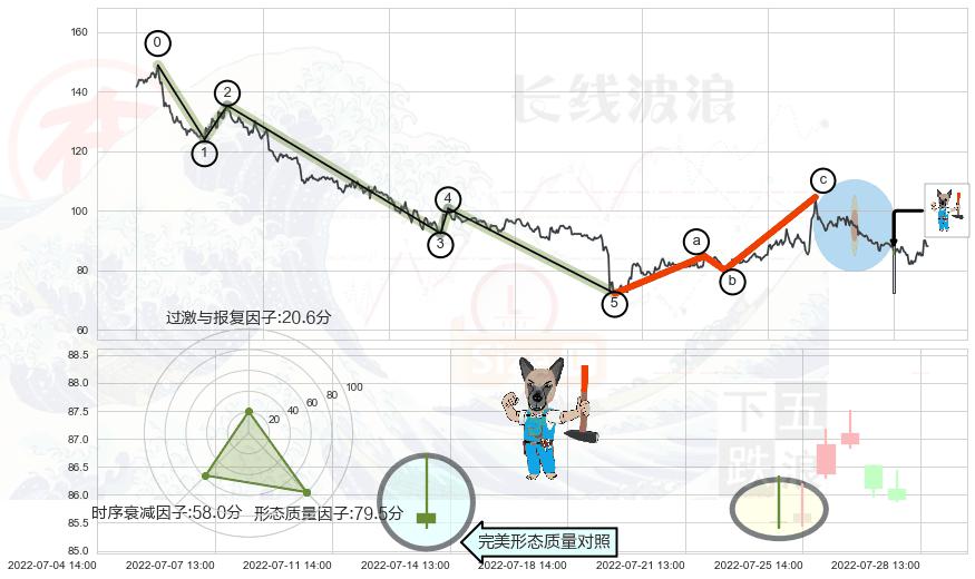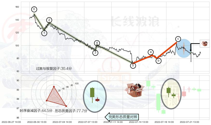 ➢ 🕰 价格走势在2022-07-05 13:00:00至2022-07-05 14:00:00期间形成中流砥柱形态,残存影响值:2.22
