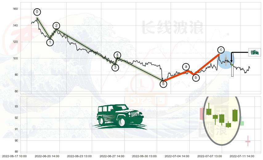 ➢ 波浪理论:猜想击穿突破c点后继续上涨 → 上涨 → 机会信号 → 小趋势跟踪