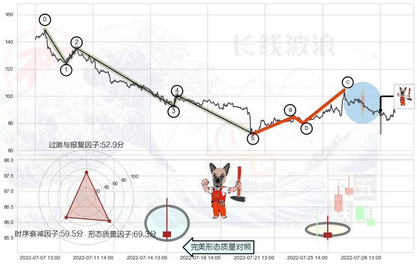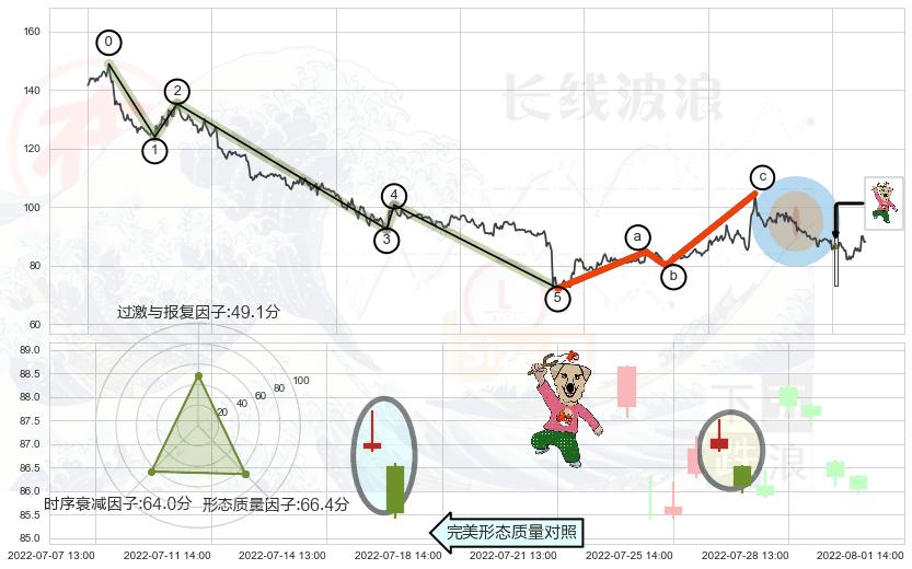 ➣ 调整浪已超过预测的c点位置,后续大趋势循环浪继续下跌概率62.81%,谨慎做多