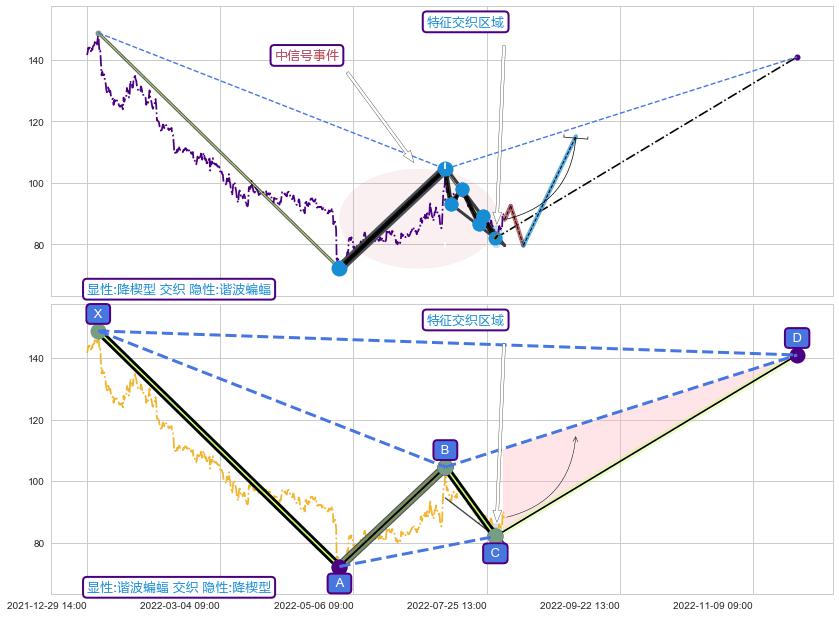 ➢ 降楔型属【中级别信号事件】谐波蝙蝠属【长级别信号事件】中长周期组合信号事件,中长事件长度比38.95%