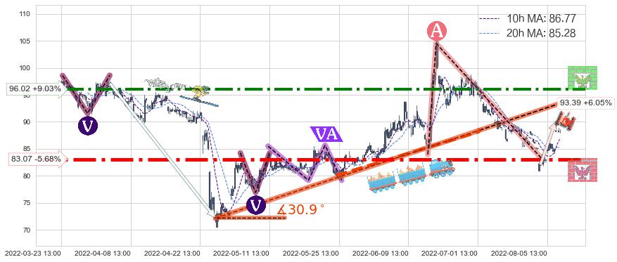 ♘ 阻力价格位96.02,可信任强度84.15%,距离最后交易2022-08-12 14:00形成的收盘价格88.07相差 +9.03%