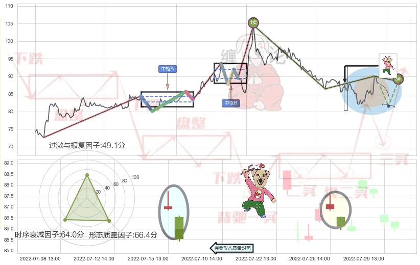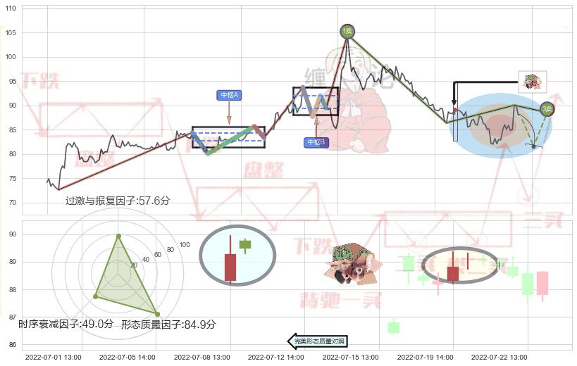 ➢ 🕰 价格走势在2022-07-06 13:00:00至2022-07-08 13:00:00期间形成高档五阴线,残存影响值:-1.69